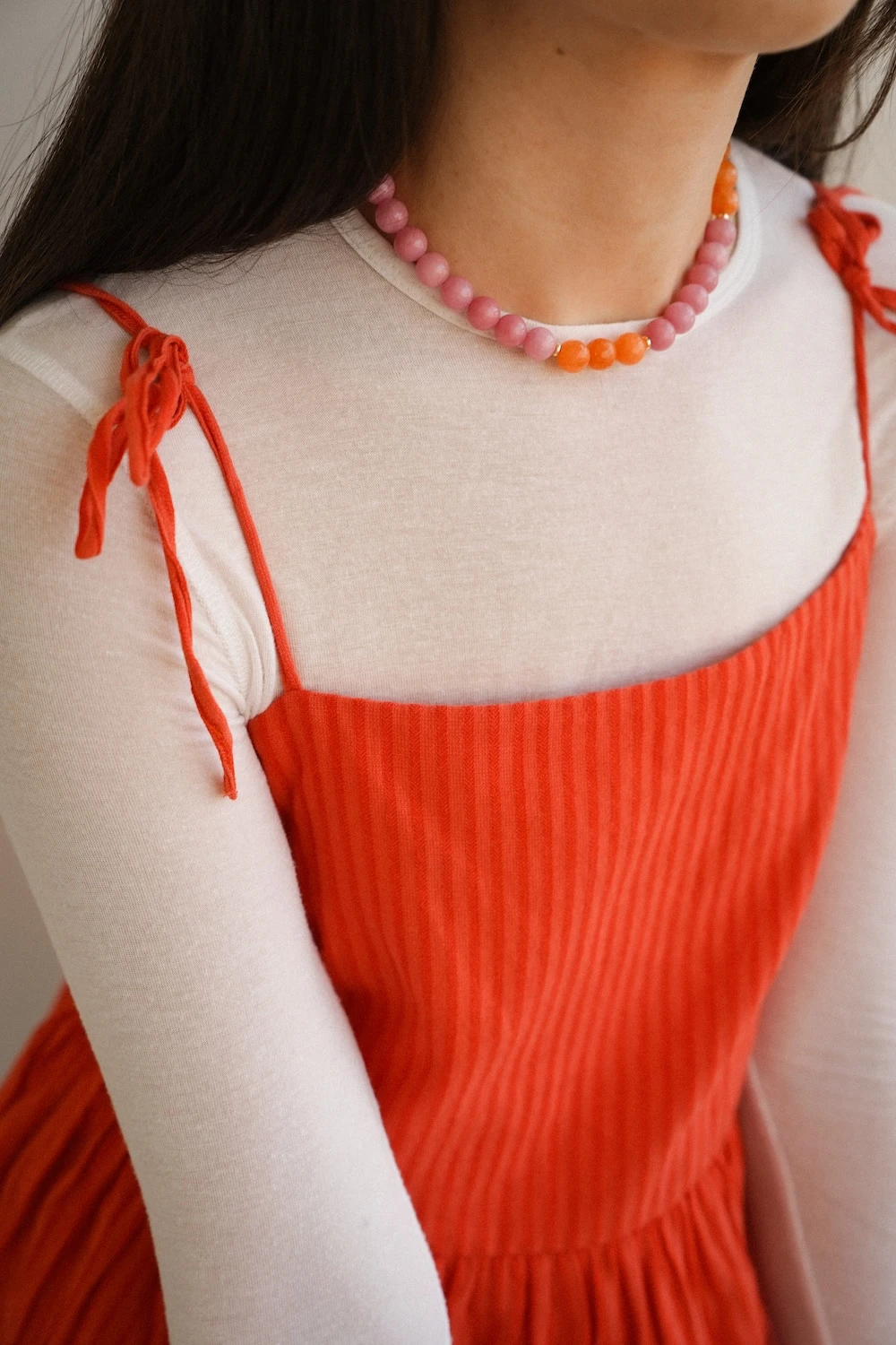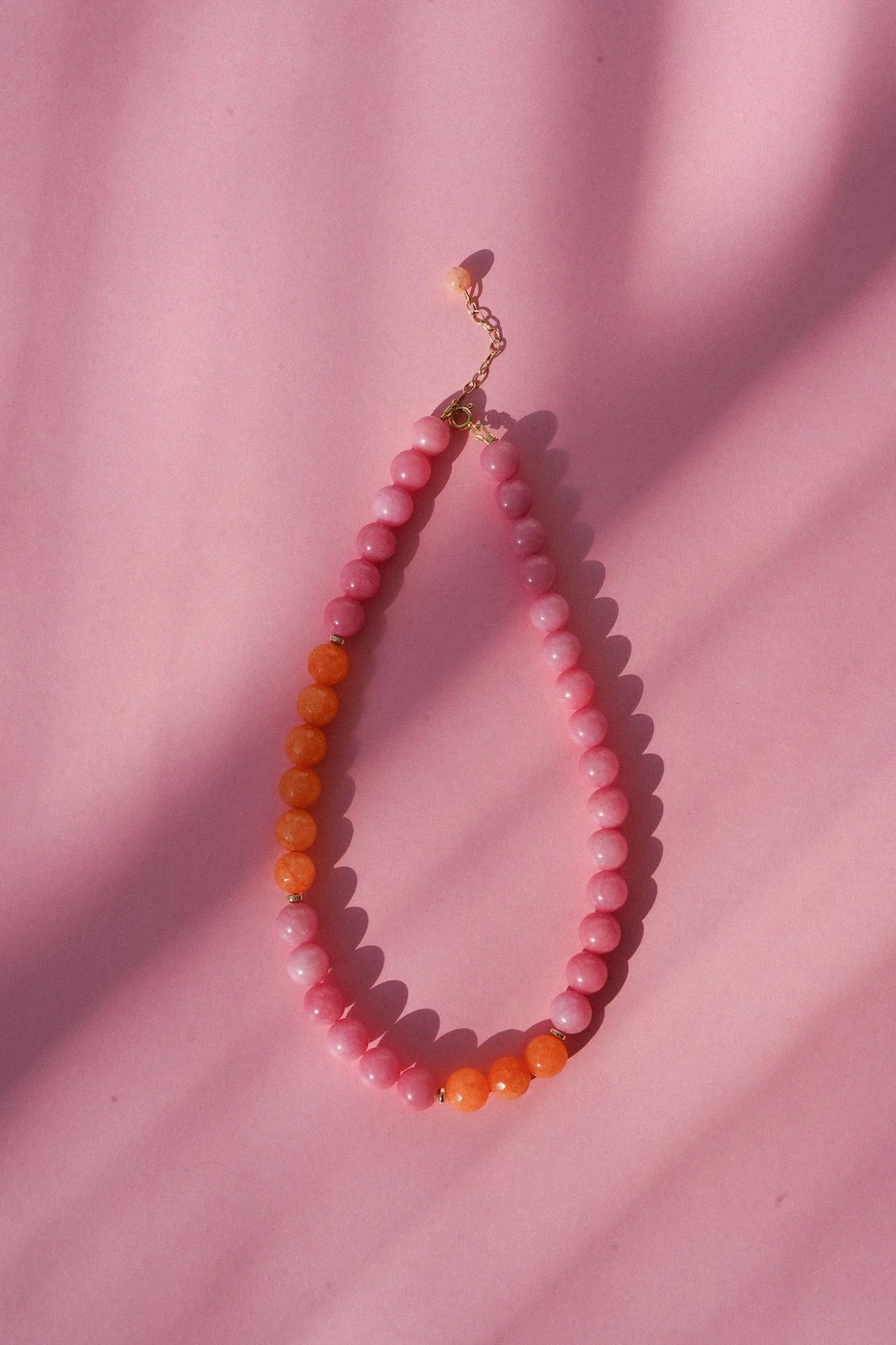 Naszyjnik Lush z kolekcji Prisma to wyjątkowa kompozycja kamieni jadeitu i chalcedonu, wykończona przedłużką ze srebra próby 925. Inspiracją dla modelu są kolory światła i spektrum pryzmatu. Pomarańcz w połączeniu z różowymi kamieniami tworzy soczysty, nowoczesny dodatek.