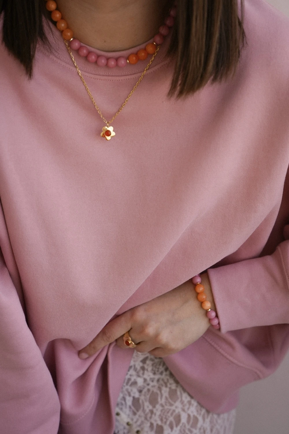 W kolekcji PRISMA łączymy naturalne kamienie i formy, które łapią światło na różne sposoby. Od miękkich, pastelowych odcieni po intensywne refleksy - każdy element gra tu swoją rolę. To kolekcja, która zmienia się razem z Tobą - w zależności od światła, ruchu i nastroju.
